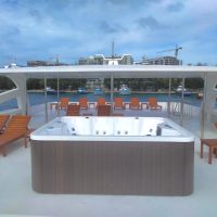 Sun deck with shade, Sun Longers, Jacuzzi, Pool/Water Slide