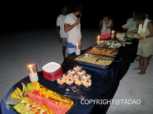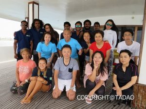 The day 3, last day for diving of this trip since we have a short trip! We started with searching for Whale Sharks in South Ari. The 1st dive was at Sun Island Out. It was fun to see a school of Yellowback Fusiliers in the middle and Whitetip Reef Sharks sleeping in the bottom. We found Scrawled Butterflyfish several times near the reef as well. Before the 2nd dive we finally found a Whale Shark and enjoyed snorkeling with him. We switched to dive at Maamigiri Out for the 2nd dive. And we made it with diving too! The 3rd dive was at Kudarah Thila. We concluded this trip with the encounter with a Spotted Eagle Ray! After dive a nice dinner on a white sand beach should have waited for us. Just we had a shower when we were about to start a BBQ dinner thought. 😉 Still, the dinner was yummy! Thank you all for choosing us and also for making this trip amazing. Hope to see you all again!
