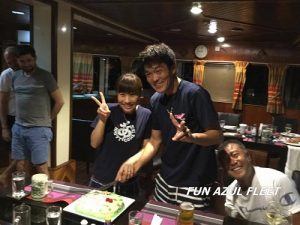 The day 4, Maamigili Out in South Ari Atoll was the point for the 1st dive of the day. We started searching for Whale Sharks in the early morning on the surface and underwater as well. Unfortunately we could not spot any. Gave up and had a breakfast, then we found it! We jumped off the boat with snorkel immediately after we got the word. Luckily the Whale Shark we found moved slowly toward us. So we all got to snorkel with it. Hooray! The 2nd dive was at Sun Island Out, surely, aimed for scuba diving with Whale Sharks! We successfully located one. And swim with it! It seemed a little different from the one we just snorkeled with. Anyway, we made it both snorkel and dive with a Whale Shark. The 3rd dive was a night dive at Alimatha Jetty in Vaavu Atoll. This was the first time for me to experience here. OMG! It was such a chaos! I mean, very exciting. Way beyond my expectation!! Dozens of Tawny Nurse Sharks passing by very aggressively, Sting Rays were flying by, Giant Trevallies were swirling around. It’s hard to describe. The dive time was over before you know it. The air temperature was 26-30 deg.C. The water temperature was 28-29 deg.C. The 3mm wetsuit was recommended.  To be continued…