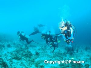 The day 5, both of the 1st and 2nd dive of the day were at Fotteyo in Vaavu Atoll but the 1st was a blue water dive and the 2nd was a channel dive. The 1st dive was literally just a blue water we could see. The 2nd dive, we encountered with Spotted Eagle Rays right after the entry! And Indian Butterfly fish were observed better because they were not that deep in here. Besides, we could enjoy the unique shapes of the land, such as overhang and swim through hole.  A school of Black Pyramid Butterfly fish appeared to see us off at the end.  The 3rd dive was at Miyaru Kandu. We stayed at the bottom and observed about a dozen of  Grey Reef Sharks, Whitetip Reef Sharks and Napoleon Fish! Then, A compact school of Bigeye Trevallies came to us very closely. As per guests’ request, the 4th dive was a night dive at Alimatha Jetty, two nights in a row! I really understood that! Unfortunately, there were a lot of scuba divers in the water this time. And the Sharks didn’t come closer to us. To be continued…