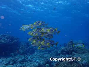 The day 5, last day for diving of this trip.  The 1st dive of the day was at Miyaru Kandu in Vaavu Atoll. Before the entry to the water, a school of Spinner Dolphins came to us to say “hello.” They were so cute! In the water, we enjoyed diving with Grey Reef Sharks, Bigeye Trevallies and Spotted Eagle Rays! Besides, one of our groups encountered with a Marlin! The 2nd dive was at Kandhooma Thila in South Ari Atoll. We enjoyed many big fish such as Grey Reef Sharks and Bigeye Trevallies again! On the reef there were many Sea Goldies and Indian Frame Fairy Basslets dancing around! So beautiful! At the end, a Green Turtle appeared as we were in the middle of the safety stop. The 3rd dive was at Vilivaru Gili. It was very relaxing. We celebrated our guests’ birthday and also their memorable dives! Thank you all for joining us and also for making this trip amazing. Hope to see you all again!