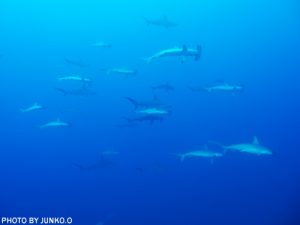 Hola! The new year dive trip for Socorro was fantastic! The 1st day at El Canyon, we started encountering with Hammerhead Sharks’ river plus a Tiger Shark during the check dive! We could see the big school of Hammerhead Sharks all day long! Then, at El Boiler about 5 of Giant Manta Rays came to meet us! At Cabo Pierce, we found a Whale Shark on the surface! At Roca Partida, a school of Galapagos Sharks as if its their season of early Spring, plus the mixed school of Silvertip Sharks and Hammerhead Sharks appeared. The school of only giant Hammerhead Sharks and Tiger Sharks was seen at El Canyon on the last day as well. The water temperature was 23-26 deg.C. The air temperature was about 23 deg.C during a day. The combination of a 5mm wet suit and an inner shirt was strongly recommended. Please don’t forget to bring a windbreaker on the deck.  Thank you all for joining us and also for making this trip unforgettable. Hope to see you all again!