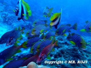 Hi, here is the report for the trip held from SEP.1-7, with the classic South route.  The condition of the weather and the ocean was perfect. I can’t believe we are in the rainy season.  The 1st dive was at Sunlight Thila in the North Male Atoll.  We could even see Manta Rays from the surface because of the great visibility as we jumped into the water. The Manta Rays were relaxed swimming by. And that made us relax as well. The great thing was that it was exclusively offered to us since there were no other dive liveaboard around. Total 4 Manta Rays we encountered with this check dive. Such a great start!  The 2nd dive was at Rasdhoo Madivaru in the Rasdhoo Atoll. We looked big fish in the first half because of the strong current.  Losing no time we found three Spotted Eagle Rays, then about a dozen of Grey Reef Sharks were circling around. Plus Shark-size of fat Dogtooth Tunas appeared. We enjoyed Tiera Batfish and colorful Anthias gave us a peaceful scene at the shore sand area on the second half of the diving.