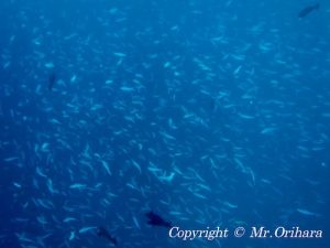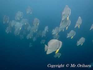 The day 6, we started the day with the 1st dive at Dhonfanu Thila in the Baa Atoll.  There were Grey Reef Sharks seen in the deep area. The regular Neon Fusiliers, Dogtooth Tunas, Bluefin Tunas and Giant Trevallies were also there at the corner, which the strong current hit. We found a Reef Manta Ray passing by around the reef. We hoped that he was attending to the Manta feeding aggregation at the Hanifaru Bay, which we would head to after the dive. We, then, moved to the Hanifaru Bay to snorkel with Manta Rays after the 1st dive as we planned. We could snorkel with about 4-5 Manta Rays at a time maximum. It was a okay, not great. The 2nd dive was at Dharavandhoo Thila. Some groups went to seek big fish, such as GT and Bluefin Trevallies and others went to observe Macro, like Gobbies. The 3rd dive was at Dhigu Thila. We entered the water as the current just started to change its direction. That made many fish gathered together! It was good to see Spotted Eagle Ray came to us several times.
