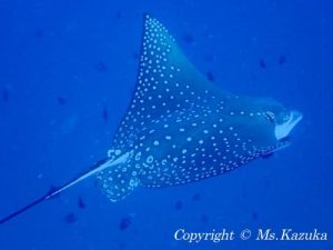 The 1st dive of the day was at Dhonfanu Thila in the Baa Atoll. We were surprised that the water was so BLUE. Why is that? Grey Reef Sharks are in the deep side, and Neon Fusiliers, Dogtooth Tunas, Bluefin Trevallies and GT were seen at where the current hit. Besides, a Spotted Eagle Ray appeared at the end. The 2nd dive was at Dhonfanu Rock. We chose here because it was closer to the Hanifaru bay and also the current was twisted weirdly. We enjoyed to observe Spaghetti Eels and cohabited Gobbies at the sand area. The 3rd dive was at Dharavandhoo Corner. The Bigeye Trevallies were making their formation at the shore. And the Bowmouth Guitarfish showed up and surprised us very well. The air temperature was 26-33 deg.C. The water temperature was 28-29 deg.C. To be continued…