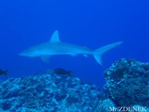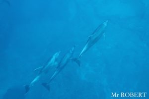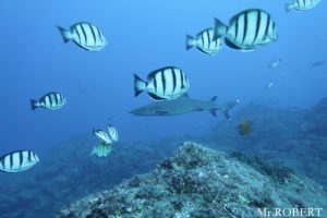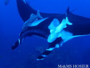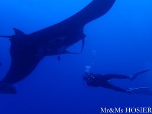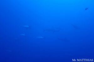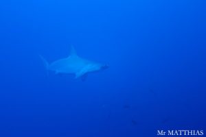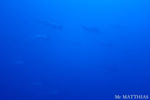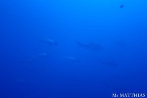The day 5, we continued dive at Cabo Pearce. There was a Manta Ray and followed by 7 of Dolphins. The group of Dolphins were in the formation to protect kids Dolphins. Still they swam circling around us for a while. Then, a school of Hammerhead Sharks appeared! Hooray! Besides, the Galapagos Shark, a Manta Ray and about a dozen of Dolphins were seen. The visibility was 15-18 meters. The water temperature was 25-26 deg.C. To be continued…