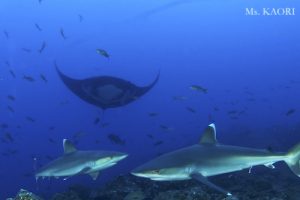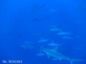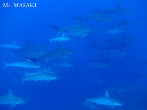 The day 2, we dove at El Canyon all day long. The visibility was 20-25 meters. The water temperature was 24-25 deg.C. We got kind of exhausted by the strong current in the water all day long. But, the effort was rewarded by the encounter with the 50+ Hammerhead Sharks! Besides, Silky Sharks, Galapagos Sharks, Dusky Sharks, Whitetip Sharks and Silvertip Sharks were seen. Even Mantas were appeared. Oh well, we were very satisfied. To be continued…
