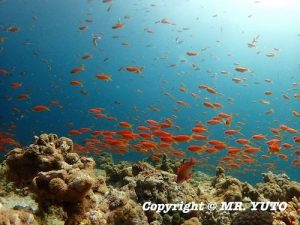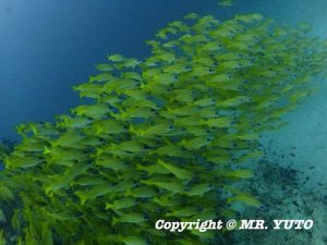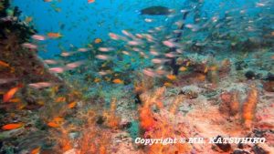 The day 2, the 1st and the 2nd dive of the day were at Moofushi Kandu in the North Ari Atoll. We enjoyed observing many of Manta Rays very well since we have missed them the night before. We changed the site to shore and to deep side as well to enjoy the school of Neon Fusiliers, Yellowhead Butterflyfish, Variable-lined Fusiliers, Black Pyramid Butterflyfish, Whitetip Reef Sharks, Grey Reef Sharks and Hawksbill Turtles. The 3rd dive was at Dega Thila in the South Ari Atoll. The swim through and the overhang are very enjoyable here. The 4th dive was at Radhdhiggaa Thila. After enjoying the Blacktipped Soldierfish and Whitetip Soldierfish in the shady area, we enjoyed the colorful soft corals in the sun. It was very relaxing. Even a Fantail Stingray was relaxing at the bottom. We had a romantic BBQ dinner on the white sand beach of an inhabited island under the starry sky. The air temperature was 26-33 deg.C. The water temperature was 26-28 deg.C. The 3mm wetsuit was recommended. To be continued…