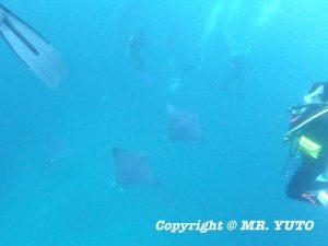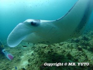 The day 3, we came to Rangali Madivaru in the South Ari Atoll for the 1st dive of the day. About 8 of Reef Manta Rays were there hovering at their cleaning station as we arrived. Hooray!  We had nice time to observe them closely. The 2nd dive was at Maamigili Out aiming for Whale Shark. We searched and searched but we could not spotted any. However, the big school of Mobulas passed by to entertain us surprisingly right after the entry and The 50 or more of Knobsnout Parrotfish were seen at the reef as well.  On the way back to the boat we finally found a Whale Shark! We made it as a snorkel with him!  What a timing! The 3rd dive was at Maamigili Corner. It was very relaxing dive with Powder Blue Surgeonfish, yet somehow excited encountering with Grey Reef Sharks and Whitetip Reef Sharks. The water temperature was 26-28 deg.C. The air temperature was 26-33 deg.C. To be continued…