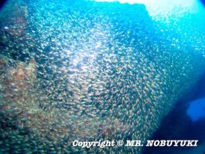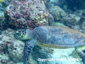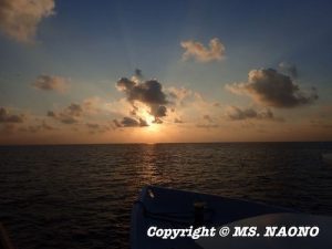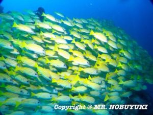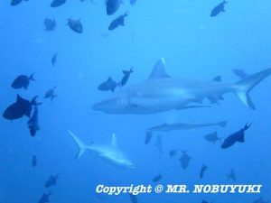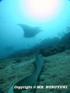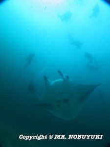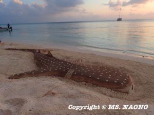 The day 2, we had the 1st dive of the day was at Fish Head in the North Ari Atoll. The visibility was fantastic as further as 30 meters. We could see the entire landscape! It was fun to watch Giant Trevallies, Bluefin Trevallies and Dogtooth Tunas attacking Fusiliers, a juvenile Spotted Eagle Ray swimming slowly by above us, False Moorish Idols and Redtoothed Triggerfish and Bengal Snappers AKA pseudo bluestriped snappers making their formation, and a Hawksbill Turtle focused on eating! The 2nd and the 3rd dives were at Moofushi Kandu in the South Ari Atoll. The 6 of Reef Manta Rays were hovering around the cleaning station. Besides, Grey Reef Sharks, Dogtooth Tunas were seen in the blue water. Dinner was held on the white sand beach. Very lovely. The air temperature was 26-33 deg.C. The water temperature was 26-28 deg.C. To be continued…