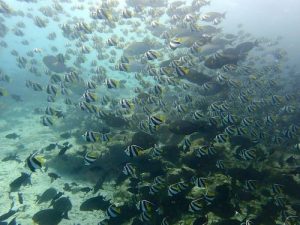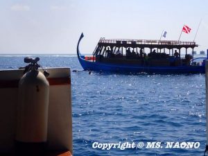 The day 3, the 1st dive of the day was at Kudarah Thila in the South Ari Atoll. For the first half, we went through the blue water to observe Giant Trevallies and Bluefin Trevallies passing by, and the second half was kind of relaxing near the reef. I always love to visit the family of Maldive Anemone fish on the top of the reef. The 2nd dive was at SunIsland Out. The 3rd dive was at Maagmigili Corner. Both of them were aiming for Whale Shark. Unfortunately we could not encounter with any of them. That’s what the mother nature does. The many of the guests finished their 3-day-dive trip and disembarked. Thank you guys for joining! And the rest of the guests continued to have adventure with us!