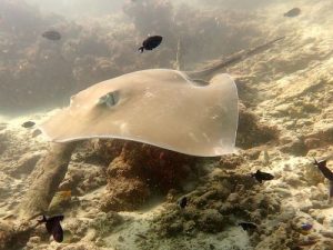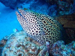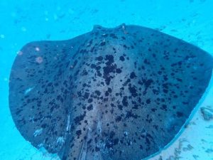 The day 4, we, had become a smaller group but still, enjoyed the 1st dive of the day at Graidhoo Corner in the South Male Atoll. The gorgeous Dogtooth Tunas welcomed us in the water. The school of Grey Reef Sharks followed after. The 2nd dive was at Fish Tank in the North Male Atoll aiming for the encounter with Giant Guitarfish. There was a numerous Pinkwhip Rays and Blotched Fantail Rays giving us a burst of adrenaline at the sand area. Also a big school of False Moorish Idols were seen above us. And the Honeycomb Moray were near the rocky area. Then, I heard the noisy alert of hitting tank suddenly from the deep side. Yes, it was a Giant Guitarfish! Hooray! The air temperature was 26-33 deg.C. The water temperature was 26-28 deg.C. To be continued…
