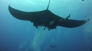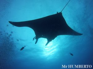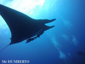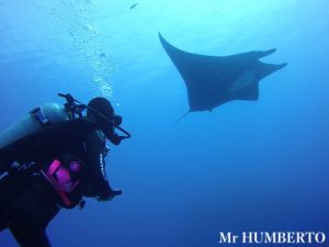 Hola!  Here is the trip report of the latest Socorro trip. The day 1 at El Canyon, the water temperature was 24-25 deg.C. Although we could not go out for the blue water because the current was a bit strong for the two dives in the morning, yet we encountered with many Sharks. And a Black Manta Ray appeared right after the entry and a couple of Manta Rays also showed up later on! The current got mellowed in the afternoon. And the visibility was fantastic! The recent regular, the expecting mother Galapagos Shark appeared as well. Then, Silvertip Shark, Dusky Sharks and even Hammerhead Sharks joined for the shark show! Additionally, we had a great luck to see a Black Manta Ray on the surface, jumped up from the ocean to the air as we were on a dinghy.