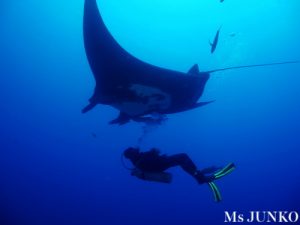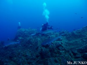 Hola! It’s been MAY already! We only a few trips left for Socorro islands in this season. Here is the latest trip report! The day 1 at El Canyon, the water temperature was 24-25 deg.C. The visibility was around 15-20 meters. The current was very mild throughout the day. We heard of Dolphins on the surface before started diving. We waited a little and they came to us near the surface. I felt blessed that there was a cute baby Dolphin as well. After seeing the Dolphins, we encountered with both of Black and regular Manta Rays! We named one of the Black Manta “Harry,” which we have seen him very often and been super friendly to us, was there and played with us as usual. Thanks, Harry! Besides, Galapagos Sharks and Silver Sharks were seen at the cleaning station. During the 4th dive of the day, we even encountered with a big school of Hammerhead Sharks!! Hooray! To be continued…