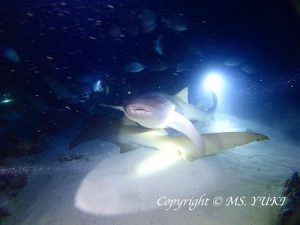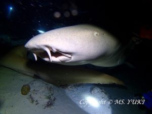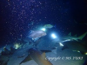 The day 4, the 1st dive was at Seventh Heaven in the South Ari atoll, which was one of my favorite dive sites. We could take a shower of Neon Fusiliers and Variablelined Fusiliers. The hunters such as Giant Trevallies, Bluefin Trevallies and Dogtooth Tunas were of course attacking the fusiliers. Spotted Eagle Rays were found in the blue water. Besides, we found 5 of Great Barracudas passing by as we came back to the main reef. Right before the 2nd dive at Dhigurah Out, we heard of the news of Whale Shark appearance. Quickly moved to the site and we made it to snorkel with the Whale Shark! hooray! The 3rd dive was at Alimathaa Jetty in the Vaavu atoll for a night dive. We started the dive before the sunset completed. Because of the early start we could get our rock’n roll spot to observe the attraction! Yay! Tawny Nurse Sharks, Giant Trevallies, Bluefin Trevallies and Pink Whipray appeared continuously. This spot has never disappointed us!The air temperature was 26-33 deg.C. The water temperature was 28-29 deg.C. To be continued…