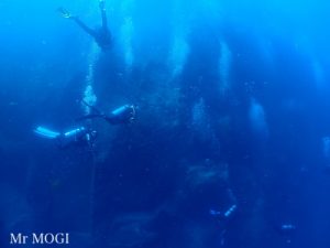The day 4, still strong wind was there. We dove at Punta Tosca for the 1st dive of the day with the water temperature was 23-24 deg.C. The visibility was around 10-15 meters. We saw a big Lobster eating a starfish for its breakfast at the rocky area. Then, we heard of Dolphins! A couple of Dolphins showed up right behind us! Yay!  The 2nd and the 3rd dive were at Cabo Pierce with 23-24 deg.C. of the water temperature. It was really hard for us to dive because of the heavy heave in the ocean. However, we enjoyed observing many reef fish and Creole fish at the cleaning station, and a big Diamond Stingray at the sand area, and Pompanos near the surface. Besides, we could see the baby Galapagos Sharks on the reef! To be continued…