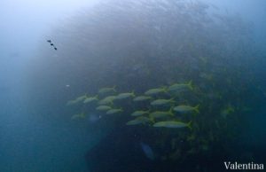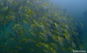 Day 5, the 1st dive of the day was at El Bajo in Cabo Pulmo. The visibility was 5 to 7 meters. The water temperature was 24 to 26 deg.C. Although the visibility wasn’t great because of the exchange of the ocean current in this time of the year, we could enjoy to observe the beautiful fan corals and a little Green Sea Turtle. Groupers were seen every where during our drift diving. Especially, the Golden Groupers look fabulous! The 2nd dive was at El Bencedor in Cabo Pulmo aiming for the encounter with Bull Shark. Some of our guests made it for the encounter, but not all of us. What surprised us most was the number of the Yellow Snappers. The stream of them was just hard to explain. And Greater Amberjacks were attacking the snappers. It was such a sight to see. Thank you all for joining our first trip of the season with M/V Valentina and also for making this trip very fortunate! Hope to see you all again!