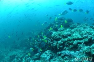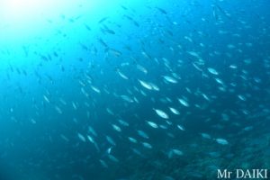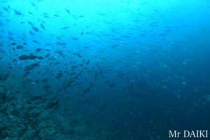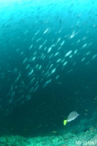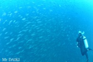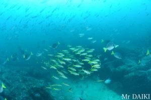 Day 3, all the 3 dives of the day was held at El Bajo. The visibility was 5-15 meter. The water temperature was 24 deg.C. The condition was gradually getting better. We tried to go out side for the BLUE WATER to search Hammerhead Sharks for a little while. Unfortunately we failed to the encounter with them, but Yellowfin Tunas, Jacks’ spawning, and a huge school of Green Jacks and Creole fish gave us a wow instead! To be continued…