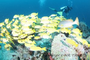 Day 2, we had the 1st dive at Dhonfanu Thila in the Baa Atoll. There were many Neon Fusiliers at the spot where the currents met. The blue color of them popped up whenever they moved as a group. The Maldive Anemonefish were doing well as usual. The 2nd dive of the day was at Dharavandhoo Thila. At first, we enjoyed observing the wall of Variablelined Fusiliers and the hunters of Giant Trevallies and Bluefin Trevallies. Then, observed cute gobbies next. Variety of Gobbies such as Fire Gobbies and Aurora Partner Gobbies. The 3rd dive was at Dharavandhoo Corner aiming for the encounter with Manta. Unfortunately we could not see them but the Oriental Sweetlips were there at the cleaning station, getting cleaned. The 4th dive was a night dive at Kihaadhoofaru Thila. The soft corals densely growing at the overhang were so beautiful to see with the light. Rock Cleaner-Shrimps were easily found in the little holes on the rocks. Plus, sleeping Parrotfish, hopefully we didn’t wake you up, and weird moves of Blackspotted Puffers and Black-Blotched Porcupinefish were seen as well. The air temperature was 26-31 deg.C. The water temperature was 28-29 deg.C. The 3mm or 5 mm wetsuit was recommended. The visibility was 10-30m. To be continued…