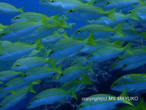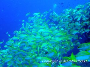 Hello, this is Kengo! Will continue the trip report! Day 2, it was such a very clear weather that we almost forgot we were in the rainy season! The 1st dive of the day was at Maaya Thila in the North Ari atoll. The school of Neon Fusiliers and Variablelined Fusiliers filled up in all the mid-space of underwater! And such hunters like Giant Trevallies and Dogtooth Tunas were attacking the Fusiliers. The Grey Reef Sharks also appeared in front of us again and again. The 2nd dive was at Fish Head. The guests’ favorite was the school of False Moorish Idols, which was perfectly formed for us to take pictures of. The Bengal Snappers were every where around the reef. The 3rd dive was at Omadhoo Thila in the South Ari atoll. It turned out to be a relax diving. And we enjoyed to observe beautiful vivid soft corals at overhangs. Passing those swim through was also very exciting!  The air temperature was 26-31 deg.C. The water temperature was 28-29 deg.C. The 3mm or 5 mm wetsuit was recommended. The visibility was 10-30m.  To be continued…