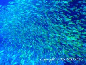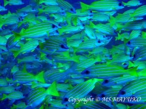 Day 3 was the last day of diving for this short route trip. The 1st dive was at Kudarah Thila in the South Ari atoll. The good weather continued still. The condition was great with fantastic visibility as we could see from the surface to the bottom. Neon Fusiliers and Variablelined Fusiliers made a big curtain in the mid layer. Giant Trevallies and Bluefin Trevallies were of course attacking them. What I should say here is that the number of the Bluestripe Snappers is extraordinary. The 2nd dive was at Maamigiri Out. And the 3rd dive was at Lux Out. Both sites were in the Whale Shark zone. Unfortunately we could not locate it. But I could introduce many of the endemic species, including Oriental Sweetlips and Colare Butterflyfish. Besides, Black-blotched Stingray, Cowtail Stingray and Mangrove Whipray were seen. The air temperature was 26-31 deg.C. The water temperature was 28-29 deg.C. The 3mm or 5 mm wetsuit was recommended. The visibility was 10-30m. Thank you all for choosing our M/V Fun Azul IV, and also for making this trip amazing! Hope to see you all again!