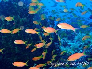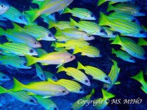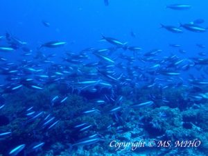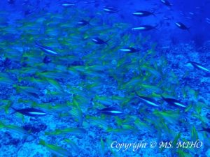 Day 3, the 1st dive of the day was at Kihaa Rock in the Baa atoll. The nice weather continued. The visibility was fantastic! We observed the Tawny Nurse Sharks asleep here and there in the overhang. Tried not to bother them. During the second half of the diving as we were observing Seagoldies on the top of the reef, suddenly a Manta Ray appeared! It was a good surprise! The 2nd dive was at Muthaafushi Thila. The current was a bit weaker than we wished. It became a very relaxed diving. The Indian Snappers, Seagoldies and Black Pyramid Butterflyfish were so beautiful. This point constantly has many amount of fish. Very stable. The 3rd dive was at Nelivaru Haa to search for Longnose Hawkfish. The Tiera Batfish were getting cleaned near the reef. The school of Neon Fusilier was huge! And we observed such a dynamic scene that the hunters attacking the big school of Fusiliers. The air temperature was 26-31 deg.C. The water temperature was 28-29 deg.C. The 3mm or 5 mm wetsuit was recommended. The visibility was 10-30m. To be continued…