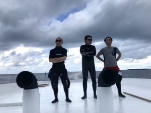 Day 4, the 1st dive of the day was at Kihaadhoofaru Thila in the Baa atoll. The visibility was great. Since it was in the early morning, the Tawny Nurse Sharks were resting underneath of the overhang. And the regular Blotched Fantail Ray was floating just like a flying carpet. The vivid soft corals, Sea Goldies and Indian Flame Basslets made a beautiful and colorful landscape. The 2nd dive was at Reethi Gaa, which had a Manta’s cleaning station, because we were told that there were Manta Rays. Indeed, there was a Alfred Manta Ray getting cleaned at the station. And surprisingly another Manta Ray joined, so total 2 of them what we could observe for entire of the 2nd dive. Because we have not heard of any good news about Manta Rays in the Hanifaru bay, we tried to search for Manta Rays in a lagoon, which had a similar landscape as the Hanifaru bay after the 2nd dive. Luckily we found about a couple of dozens of Manta Rays and snorkeled with them in the lagoon!! The 3rd dive was at Dharavandhoo Corner. Unfortunately we could not find any Manta Rays, but we found a Whale Shark instead!!! It was as big as 8 meters length! Hooray!! The air temperature was 26-31 deg.C. The water temperature was 28-29 deg.C. The 3mm or 5 mm wetsuit was recommended. The visibility was 10-30m. To be continued…