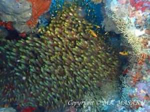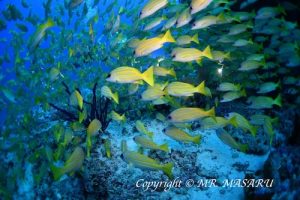 Day 3, we have arrived at the farthest south of Ari atoll for the encounter with Whale Sharks. The 1st dive of the day was at Kudarah Thila in the South Ari atoll. A big school of Bluestripe Snappers welcomed us at the end of the swim through. Humpback Red Snappers also joined to the crowd! My favorite was the Sea Goldies on top of the reef. Then, Bluefin Trevallies attacked a big school of Neon Fusiliers were happening right next to the Sea Goldies. It was such a fulfilling morning dive. The 2nd dive was at Dhigurah Out and the 3rd was at Lux Out. For both of them, we were aiming for Whale Sharks. Unfortunately we could not make it happened. Instead, a couple of Spotted Eagle Rays passed by, Leaf Scorpionfish, Reef Stonefish and Whitetip Reef Sharks were seen. The air temperature was 26-31 deg.C. The water temperature was 28-29 deg.C. The 3mm or 5 mm wetsuit was recommended. The visibility was 10-40m. To be continued…