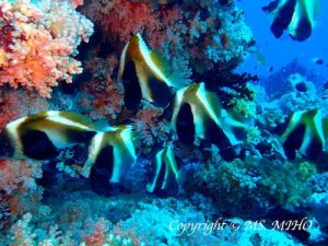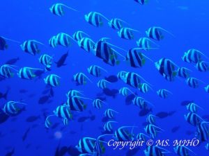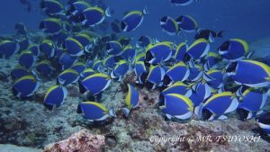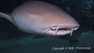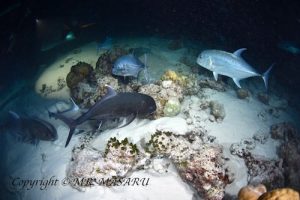 Day 4, the 1st dive of the day was at Seventh Heaven in the South Ari atoll. This point has beautiful soft and hard corals. Literally it was heaven with a big school of Neon Fusiliers attacked by Dogtooth Tunas, four Napoleon fish swimming together and the endemic Indian Bannerfish. The 2nd dive was at Dhidhdhoo Out. The endemic species of Imposter Blennies and Evansi Anthias were introduced. And a specialty of Maldives, Powderblue Surgeonfish were seen at the top of the reef while our safety stop. The 3rd dive was at Alimathaa Jetty in the Vaavu atoll as a night shark. Right after the entry, all stars here, such as Tawney Nurse Sharks, Giant Trevallies, Bluefin Trevallies and Pinkwhip rays assembled! After a while, there was the river of Tawney Nurse Sharks made out of dozens of them streaming as I looked up! It was amazing! The air temperature was 26-31 deg.C. The water temperature was 28-29 deg.C. The 3mm or 5 mm wetsuit was recommended. The visibility was 10-40m. To be continued…