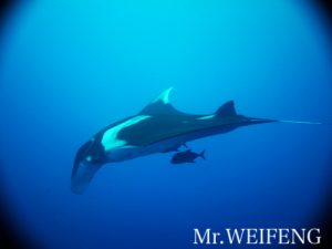 Day 4, the ocean was calm so we gave it a try to dive at Rock O’neil, which rarely go as usual, for the 1st dive of the day. The water temperature was 26 deg.C. The visibility was 15-18 meters. We hoped for the encounter with Hammerheads and Dolphins but there was no chance. The 2nd, the 3rd and the 4th dives were at Punta Tosca. The water temperature was 26 deg.C. The visibility was 15-18 meters. The landscape here is beautiful. We successfully spotted three of Manta Rays and a Black Manta. There have been sound of Dolphins since we entered. As we were in the safety stop, we finally found the owner of the voice, a couple of False Killer Whales! Oh my goodness!  Super!