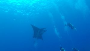 Hola! Overall the latest trip was lucked out the calm condition of the water. Here is the detail; Day 1, we dove at El Canyon. The water temperature was 25-26 deg.C. The visibility was fantastic as 15-18 meters. The dive was amazing! This is what El Canyon has! Right below the spot where we entered into the water, the Black Manta awaited us! Then a Chevron Manta joined, then another Black Manta as well. We just enjoyed spectacular dance of hovering them around! As we went out to the blue water, a school of big Hammerhead Sharks filled our satisfaction. Besides, Silverthip Sharks were seen at the cleaning station. What a great dive! To be continued…