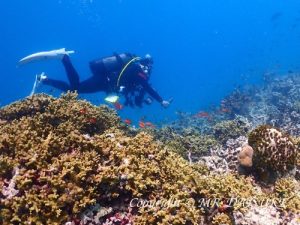 Day 2, the 1st dive of the day was at Rakeedhoo Kandhu in the #Vaavu atoll. The current was slightly outgoing from the inside the atoll. We observed beautiful Indian Flame Basslets and Sea Goldies along with the reef. As we moved to the deep side, there were cute Purple Firefish hovering with its best. The colorful soft corals entertained us in the overhangs. The Grey Reef Sharks passed back and forth. The 2nd dive was at Vanhuravalhi Kandu in the #Meemu atoll. The Spotted Eagle Rays were gorgeously flew by near the reef. Neon Fusiliers and Yellowback Fusiliers were gathered very relaxing as we looked to open water from the channel. Even Bluefin Trevallies and Dogtooth Tunas were swimming very mellow. There was a Whitetip Reef Shark asleep in the rock. The 3rd dive was at Kurali Kandu aiming for Manta. Although there were several Manta’s cleaning stations, no Mantas appeared unfortunately. We observed Aurora Partner Gobbies and Dracula Shrimp Gobbies at the sand area instead. It was cute that a big family of endemic Maldive Anemonefish live in a sea anemone. They were about 10 of them. It should be a little tight, I would guess. The water temperature was 26-31 deg.C. The water temperature was 26-28 deg.C. The visibility was 10-30 meters. To be continued…